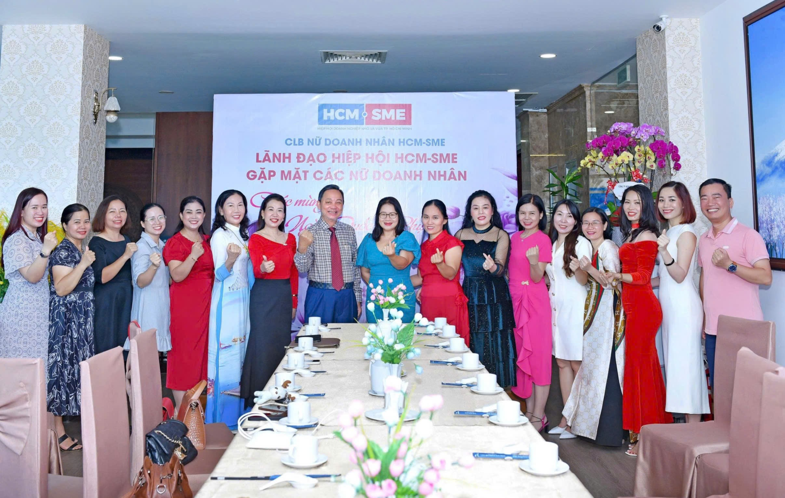 Buổi gặp mặt khép lại trong không khí thân tình với những bó hoa tươi thắm và những lời chúc tốt đẹp dành cho các nữ doanh nhân. Sự kiện không chỉ là dịp tôn vinh phụ nữ mà còn thể hiện tinh thần đoàn kết, gắn bó trong cộng đồng doanh nghiệp HCM-SME.